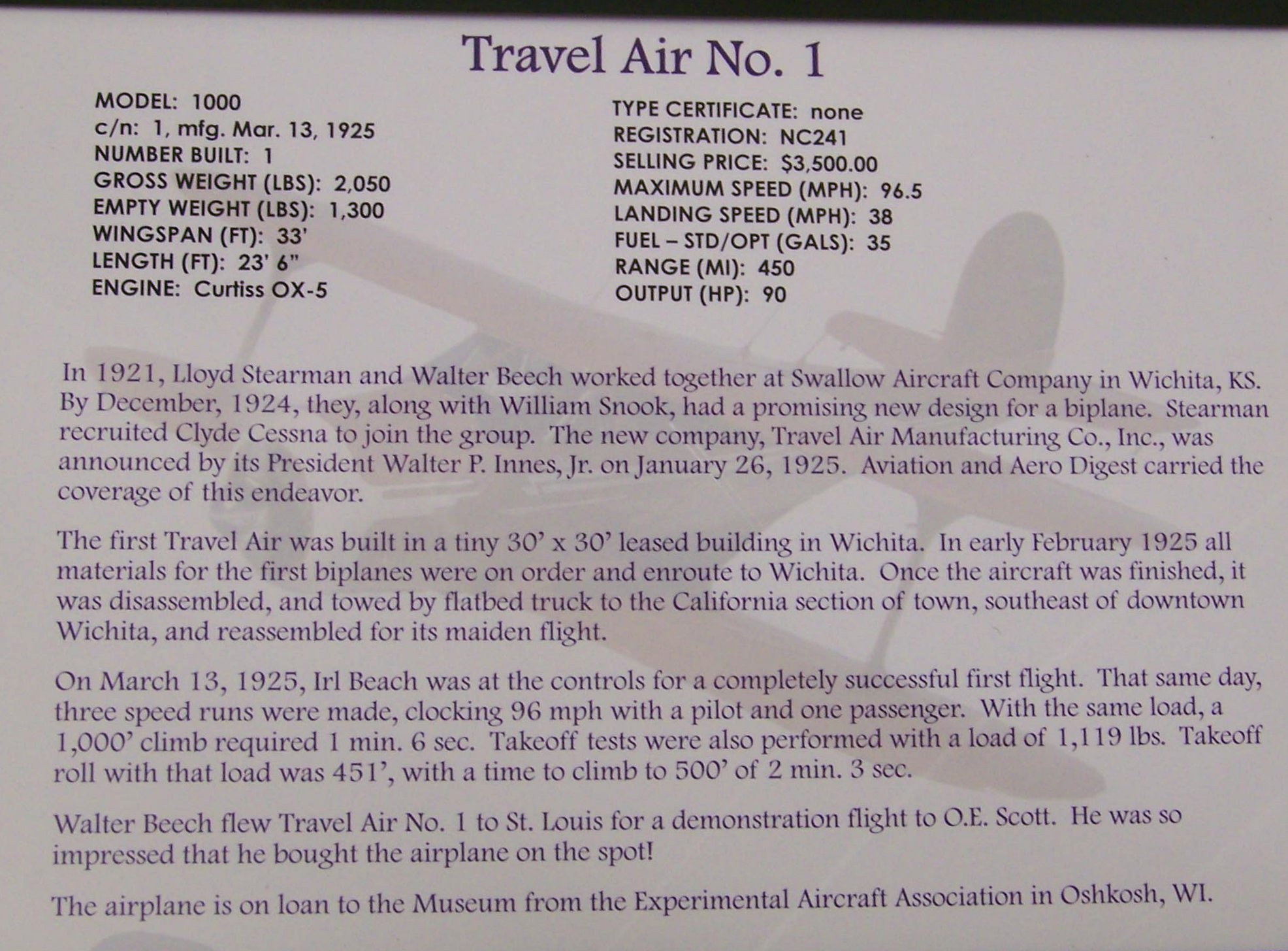 Travel Air No. 1