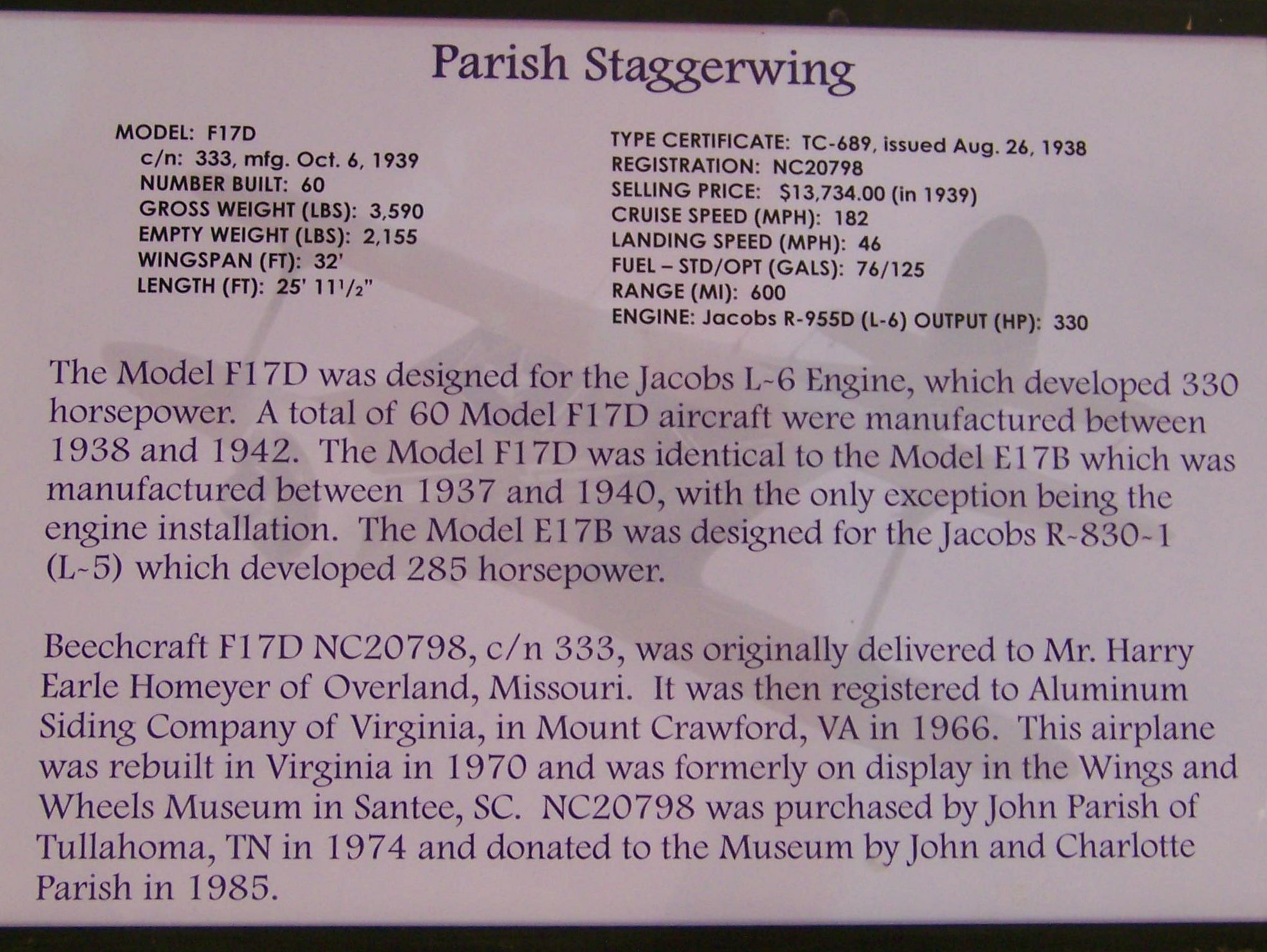 The Beechcraft Heritage Museum is only about an hour, and some change, drive from Cookeville or about a 25 min plane ride.