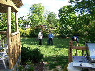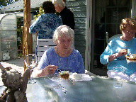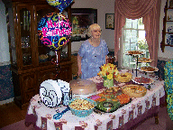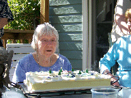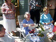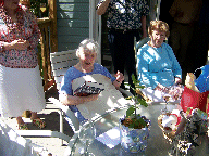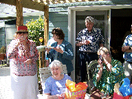 A tour of the garden. Let's get this party started, cause all my rowdy friends are coming over tonight. And Mom opens the gifts. The Hosts really have a green thumb. The neighbors have a wild duck taking to the swimming pool. Mom with friends Mom with Hosts Mom with us. We Love You Mom |
